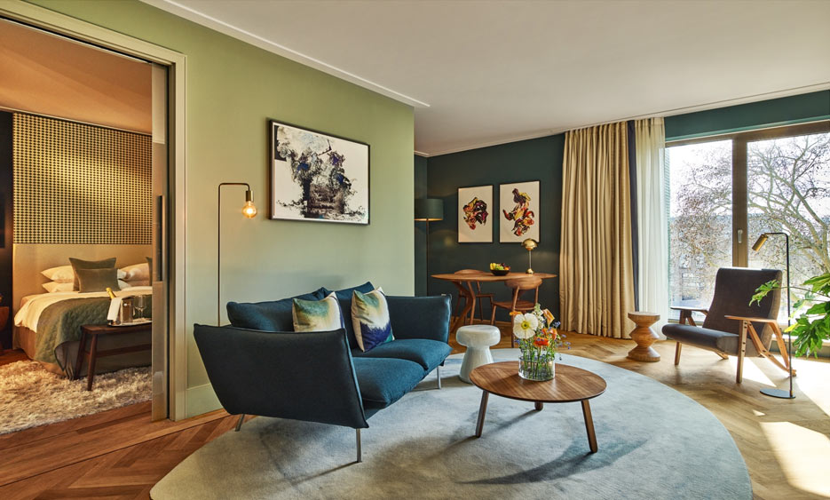 Inspired by the five star hotel’s location in central Amsterdam’s green Plantage neighbourhood, and bringing the botanical ambience of the hotel into its most luxurious spaces, Hyatt Regency Amsterdam appointed Archer Humphryes to redesign its Regency (from 55sqm) & Regency Executive Suites (from 60sqm). For this project, the architects set out to “reconcile the tradition and modernity which envelops Amsterdam’s urban fabric” and create warm, open and trendy residential spaces that blend the awarded green design of the hotel’s public spaces and connect this to the city. The resulting suites offer more of a home than a hotel room, “tactile, sensuous” spaces that stand out against the more conventional design of traditional urban hotel rooms & suites. Julie Humphryes describes “The suites exemplify a modern peaceful retreat that reflects the colours of this water city with the experimental attitude to furniture that Amsterdam is renowned for.”