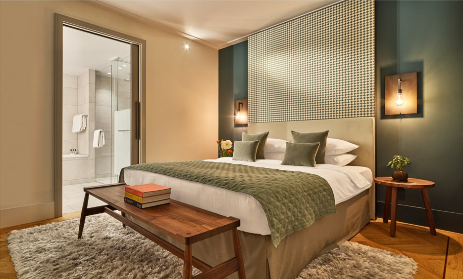 Exuding both style and substance, the design incorporates herringbone wooden floors, an Inchyra Blue and warm walnut colour palette, as well as furniture by Pols Potten, Gubi and Artisan among others. Modern floral artworks are limited editions by Amsterdam-based Dutch artist Jan Commandeur and photography that reflects the building’s history blends the old with the new. More functional features and amenities are on hand to seamlessly complement a guest’s stay.